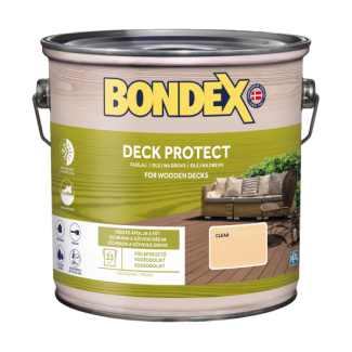 Megfelelően előkészített kültéri fafelületek bevonataként alkalmazható. Különösen ajánlott járófelületekre (pl. fa terasz, fapadló, fajárda) és pergolákra. A bevonat vízlepergető, UV-álló, és védelmet nyújt a gombásodás ellen. A Bondex Deck Protect alkalmazható olyan egzotikus fafajtákon is, mint a teak, bangkirai, meranti és vasfa.